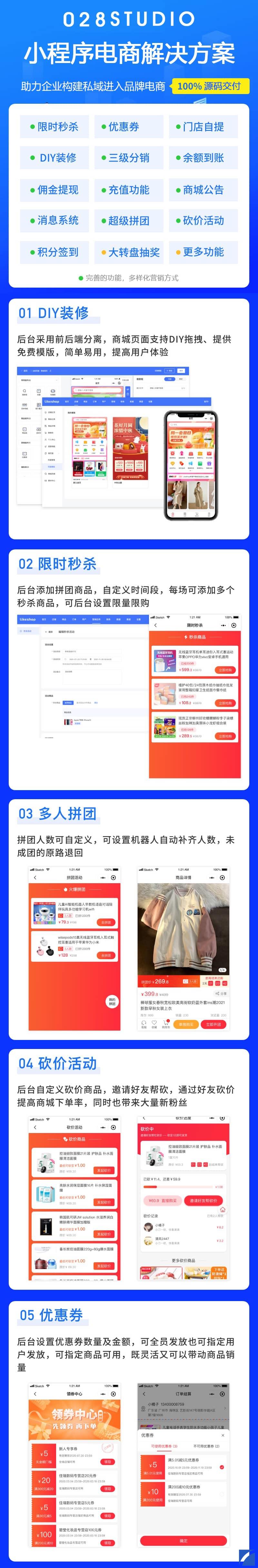 助力企業(yè)快速進(jìn)入移動社交電商新時代;B2C、單商戶、自營商城場景。完美契合私域流量變現(xiàn)閉環(huán)交易使用。 系統(tǒng)擁有豐富的營銷玩法,